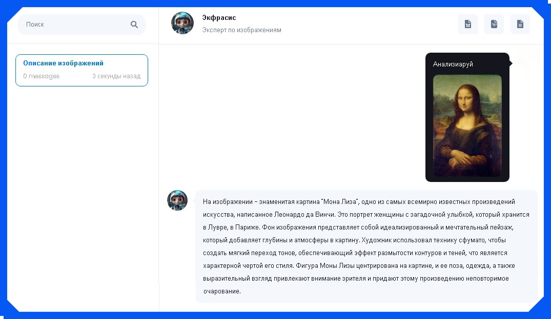 Рады представить уникальную разработку на рынке искусственного интеллекта - нейросеть, способную создать экфрасис по фотографии. Экфрасис является формой искусства, в которой описание произведения искусства, в данном случае — фотографии, пронизывает читателя визуально и эмоционально.