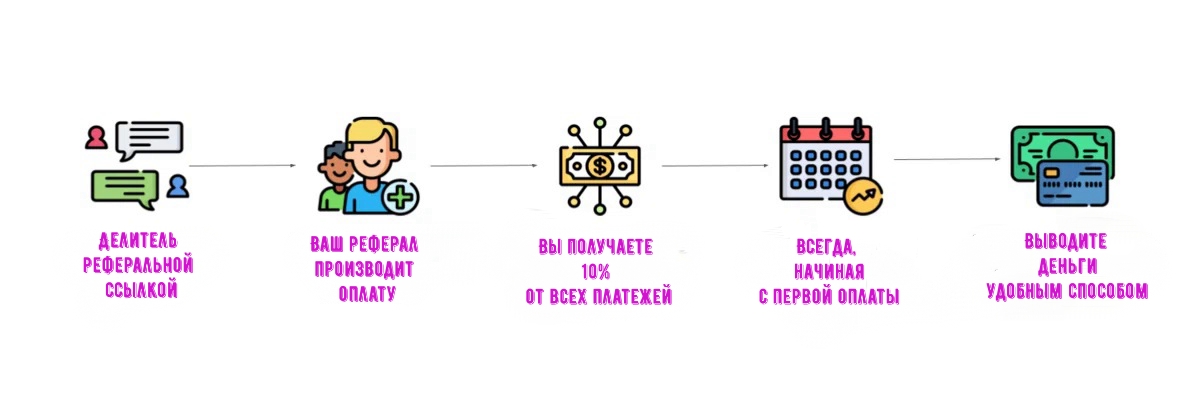 Присоединяйтесь к нашей реферальной программе прямо сейчас и начните зарабатывать просто за привлечение новых пользователей к нашему сервису!